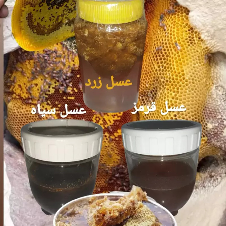 عسل سیاه 200 گرم و عسل قرمز 200 گرم و عسل زرد 500 گرم صخره وحشی پیشنهاد ویژه